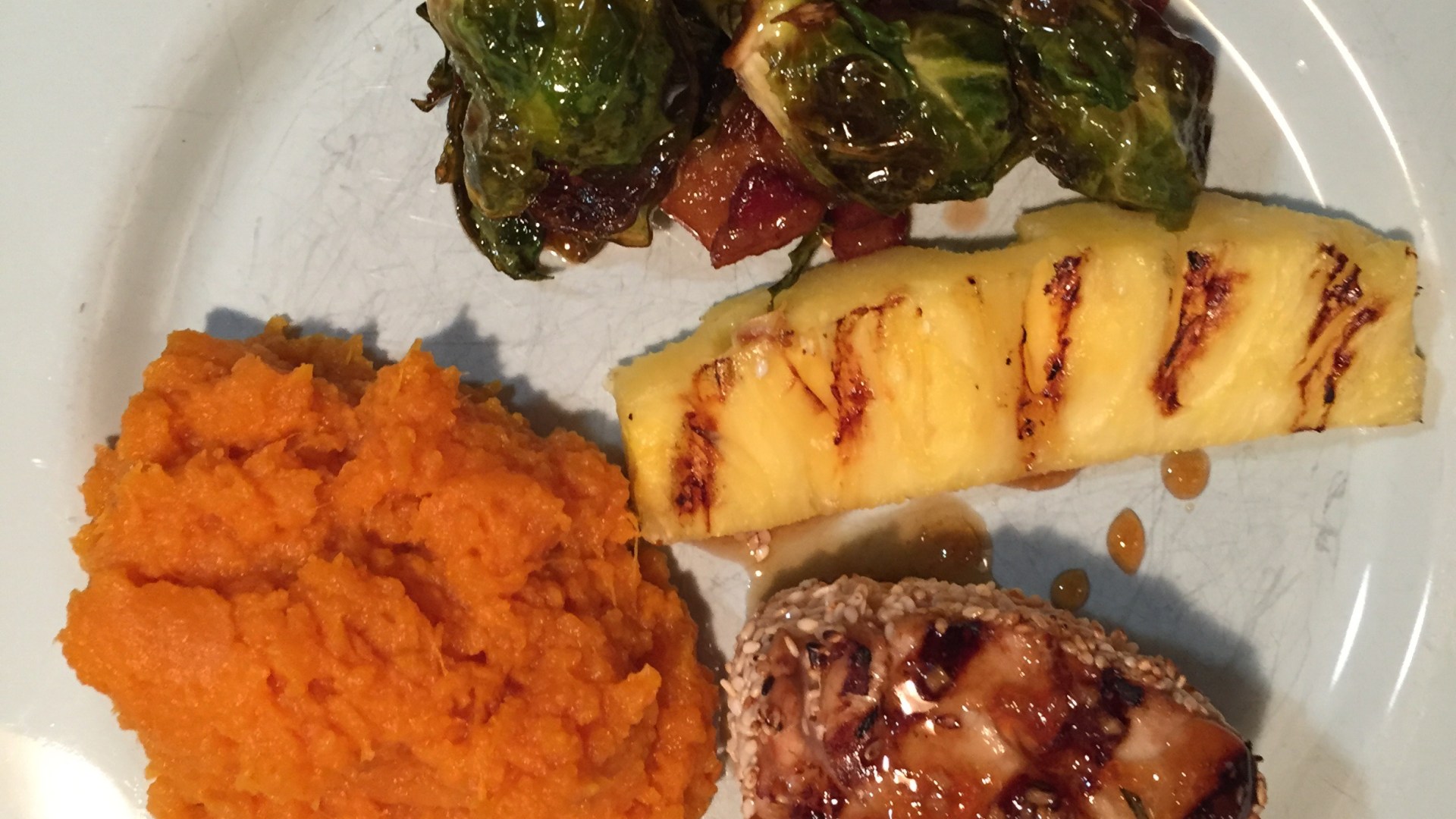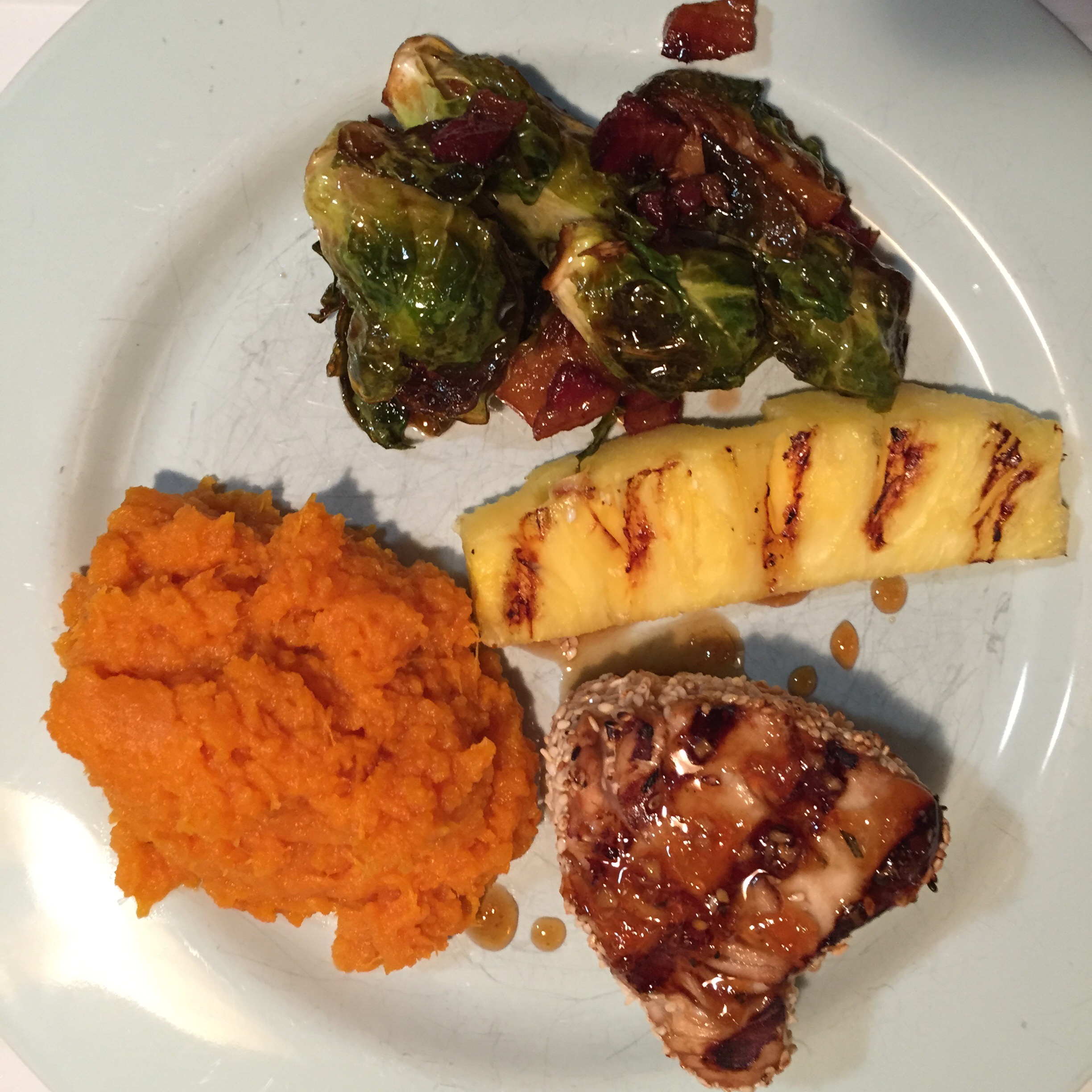 June 4, 2016Grilled Tuna Steaks Scroll down to content Tonight’s dinner of grilled tuna steaks with a lemon, fresh ginger, Sauvignon Blanc and simple syrup glaze; Carmelized Brussels sprouts with bacon, brown sugar and soy sauce; mashed sweet potatoes & grilled fresh pineapple. Share this: Click to share on Facebook (Opens in new window) Facebook Click to share on X (Opens in new window) X Click to email a link to a friend (Opens in new window) Email Like Loading... Published by Ed business developer + networker + nonprofit director + husband + amateur photographer + tenor View all posts by Ed