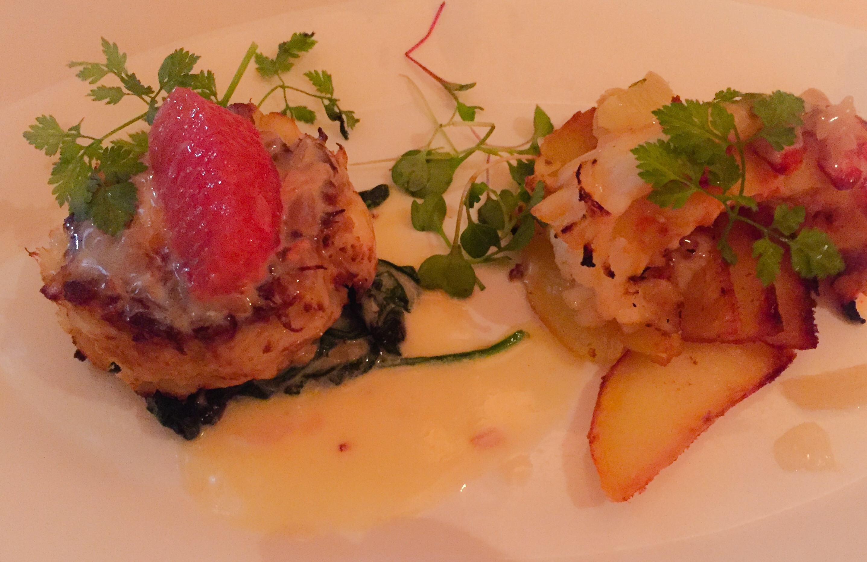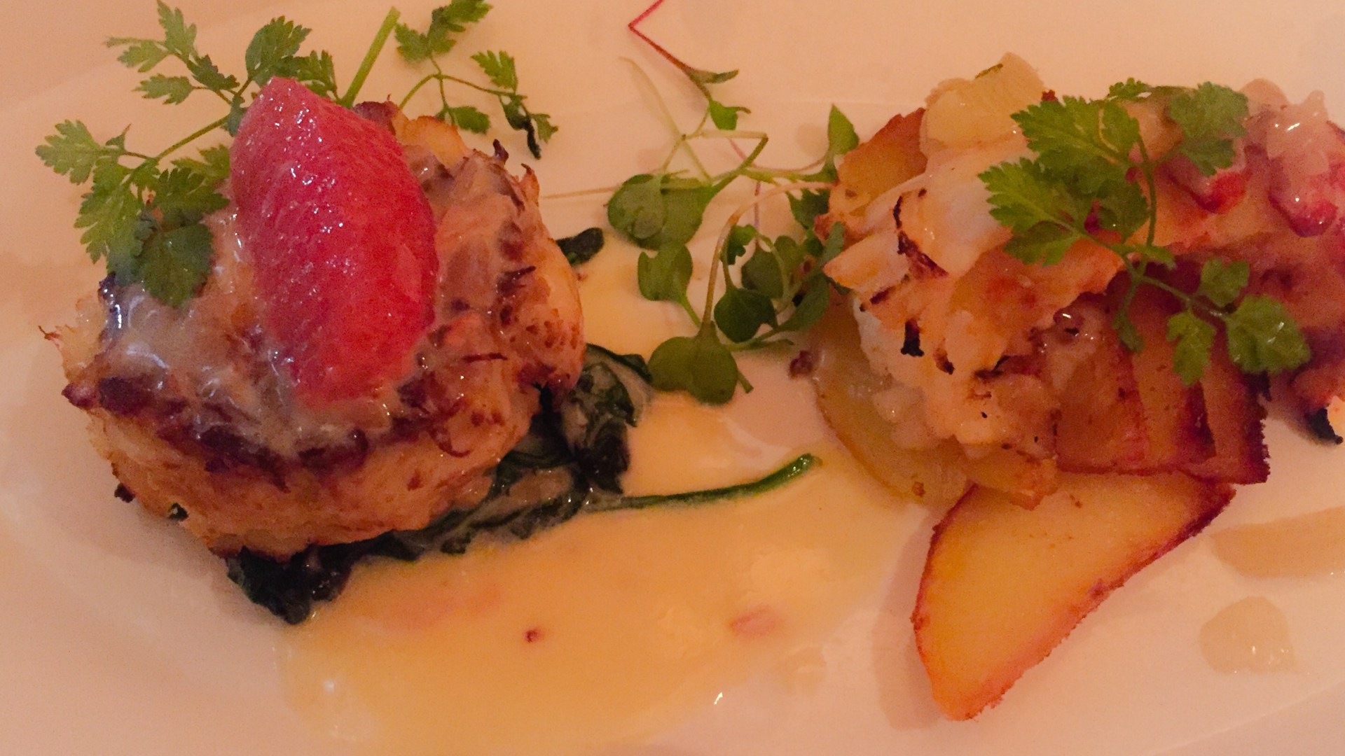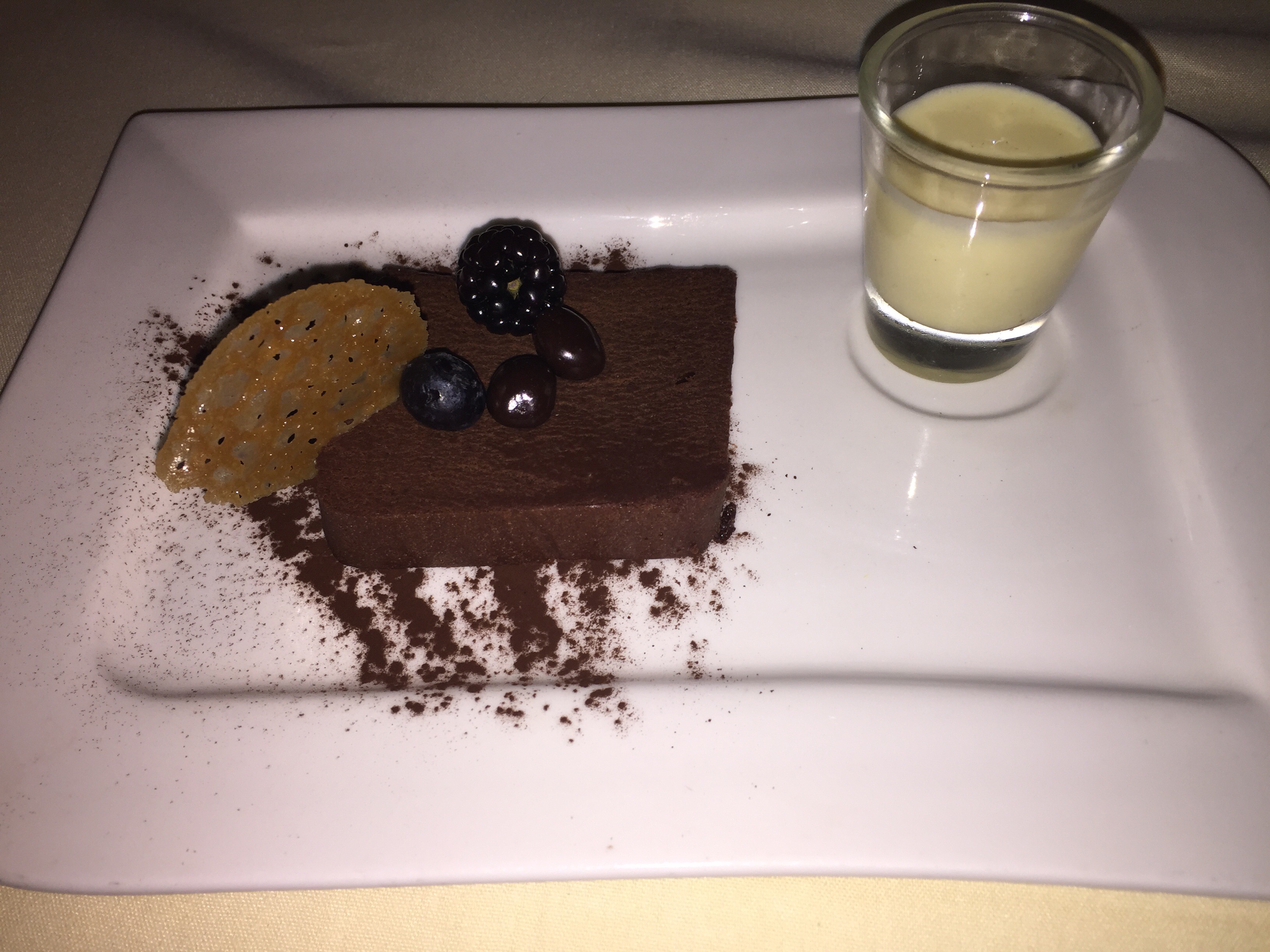 We had a great meal at an old favorite, Le Yaca on Wednesday. While the food has always been great, the service is occasionally spotty. The asparagus soup starter was rich and creamy. The surf and turf entree, a crab cake and lobster tail, was a lovely combination of light (crab cake) and succulent (lobster tail). The crab cake was served on a bed of wilted spinach; the lobster was served with savory scalloped potatoes. As always, artfully presented. Desert for a flourless chocolate tart served with a shot of creme Anglaise; a strong flourish for a fine meal.