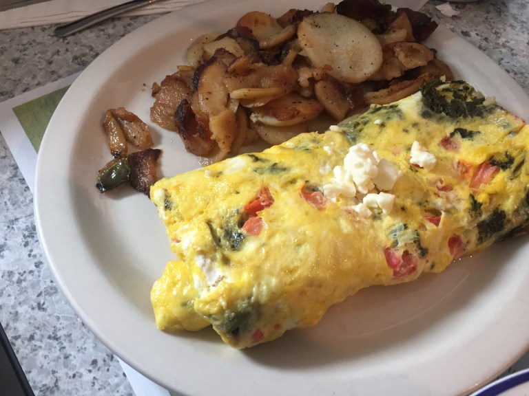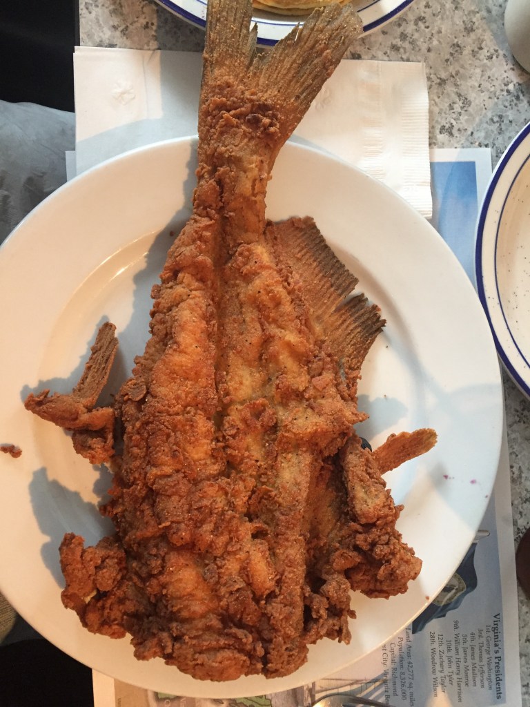 Had a great brunch with Marcia Warren, Shirley, Nicole & Jay Lecher at Southern Pancake & Waffle House in Williamsburg, VA. Southern had a daily special of fried catfish, eggs, sautéed apples and a biscuit. Marcia had a Greek omelette and we shared a short stack of blueberry pancakes. An awesome meal – four hours later I’m still not ready to eat anything else.