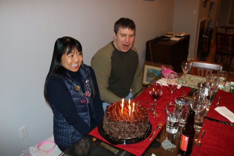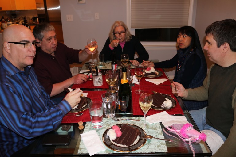 Had a great dinner and birthday celebration with Suzanne Bunuan Riley, Chris Riley, Kevin Campbell, & Keith Binder. We feasted on chicken, ribs, asparagus, mashed sweet potatoes, and chocolate cake.