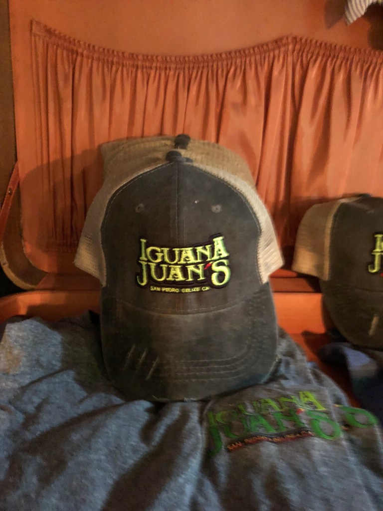 We had a nice dinner at Iguana Juan’s in downtown San Pedro. We’d been seeing signs for the restaurant all over the island. Like many of the restaurants and bars in San Pedro, it’s owned and run by an American ex-pat. Their menu and marketing are have a decidedly American appeal.