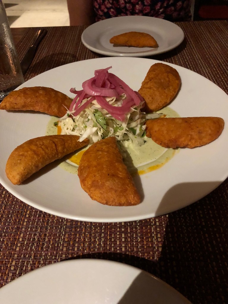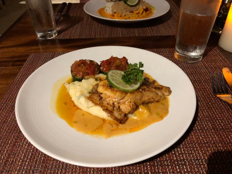 We returned to Red Ginger for dinner. While some of our fellow patrons we bit loud, the food didn’t disappointed. We shared an order of empanadas to start. My main was a blacked red snapper served over mashed potatoes with a shrimp-infused brandy cream.