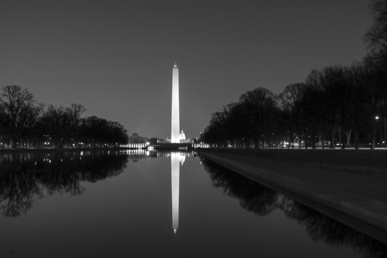From my walk down to the #NationalMall yesterday. Got this photo of the #WashingtonMonument from the base of the #LincolnMemorial with the reflecting pool in the foreground. Barely perceptible in the background are the #CapitolBuilding and the World War II Memorial